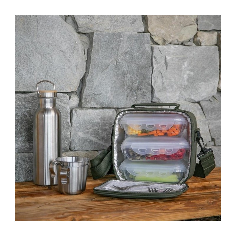 A Livoo ételhordó szett zöld színben praktikus választás azoknak, akik szívesen visznek magukkal otthon készített ételt a munkahelyre, iskolába vagy utazáskor. A szett kialakítása a mindennapi használatot támogatja: könnyen kezelhető, jól záródó elemekkel segíti, hogy az ételek frissen és rendezetten maradjanak a nap folyamán.