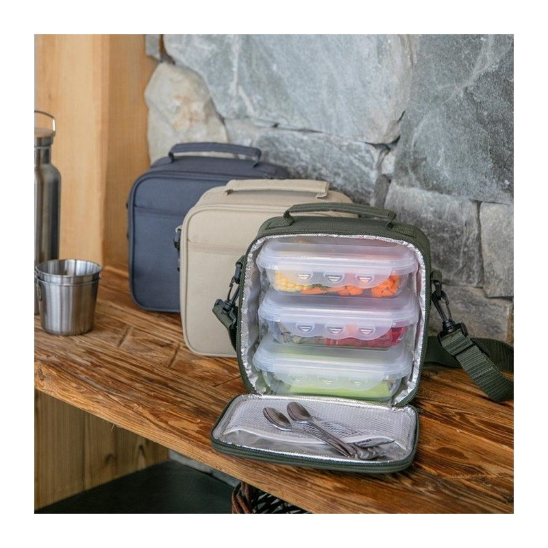 A szett kompakt méreteinek köszönhetően egyszerűen elfér táskában vagy hátizsákban, így nem foglal feleslegesen nagy helyet. A tervezésnél szempont volt, hogy a dobozok kényelmesen pakolhatók legyenek, ezért az étel könnyen szétválasztható és porciózható bennük.