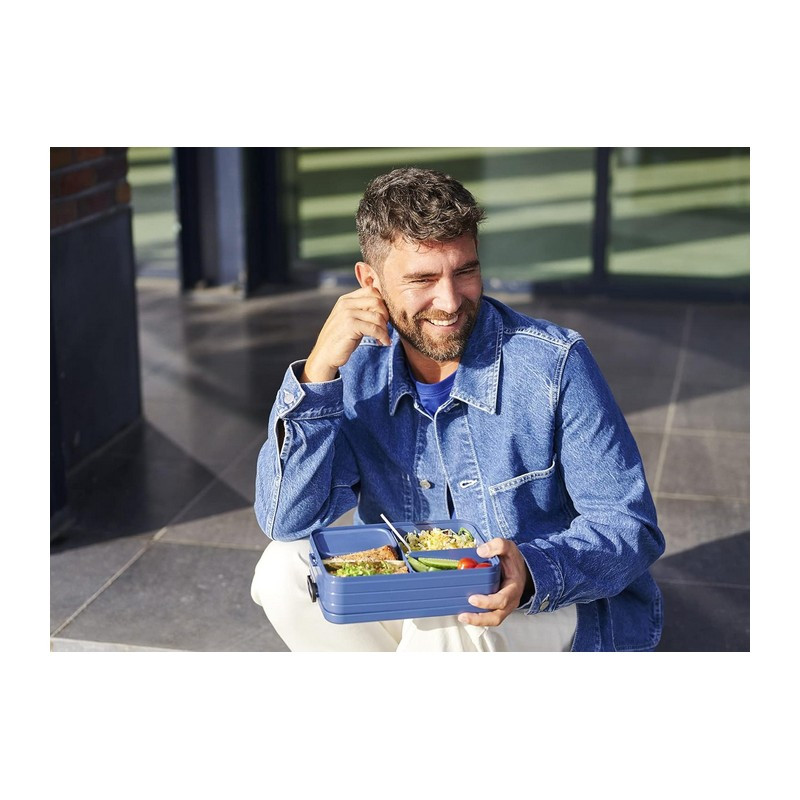 Nem számít, mekkora az étvágyad, a Take a Break XL uzsonnásdobozzal mindig elegendő ételed lesz! A masszív uzsonnásdoboz elég nagy ahhoz, hogy 8 szelet kenyér elférjen benne, így még a legnagyobb étvágyat is kielégíti. A fedél jól záró tömítőgyűrűvel rendelkezik, amely biztosítja, hogy az uzsonnánk friss maradjon. Törekedj a tartósságra, élvezd a nagyszerű ételeket és az egészséget ezzel a Mepal uzsonnásdobozzal. Extra jó: használat után egyszerűen mosogatógépbe tehető.