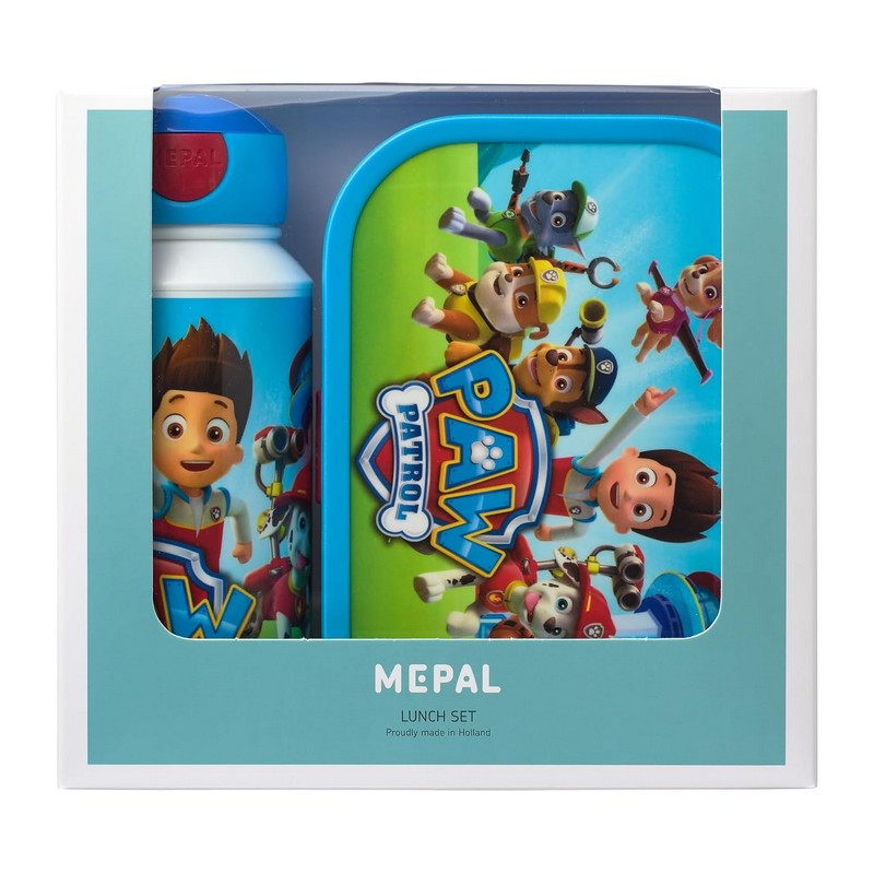 A készlet egy ivópalackból és egy uzsonnásdobozból áll, kedvelt Mancs őrjáratos mintával