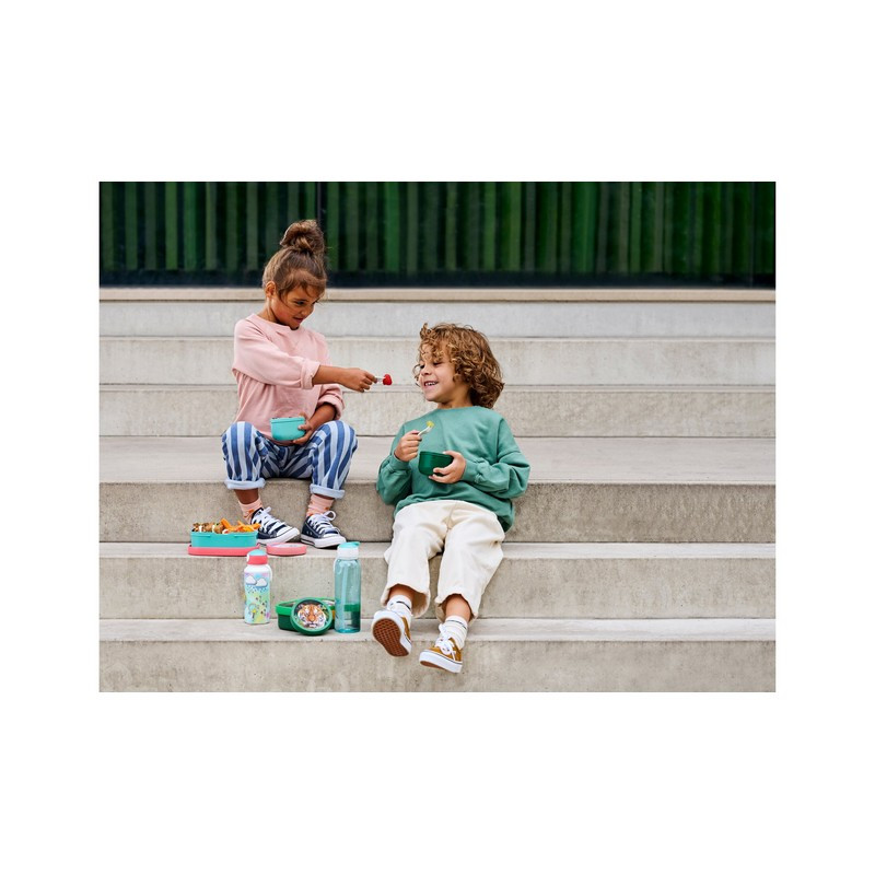 Az uzsonnásdobozban akár 4 szendvics is elfér, valamint egy bento box és villa is található benne. Így válik az ebédidő a választás lehetőségeivel igazi gyerekjátékká! Lepd meg fiadat, lányodat egy kis édessel, snack paradicsommal ebédre, vagy vigyen magával egy darab sajtot vagy kolbászt. A lehetőségek tárháza ezzel a praktikus dobozzal szinte végtelen! Kedves kis extrák és figyelmességek minden nap. Anyunak és apának is extra jó: a kulacs és a doboz is mosogatógépben mosható.