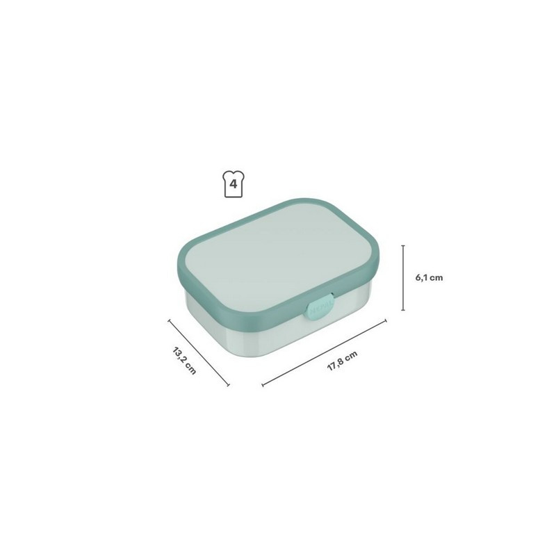 Mepal Campus egy praktikus uzsonnás doboz gyerekeknek, melynek belseje 3 részre osztott, benne kivehető betét, és egy kis villa is található. A rekeszekben jól elkülönülnek a különböző ételek, így tartalmuk tovább friss marad.