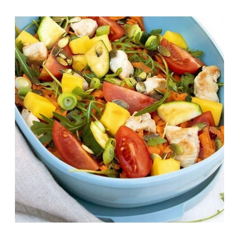 Nagy szendvicsekhez, salátákhoz, teljes főfogásokhoz megfelelő méretű. A felső rekesz nélkül a mikróba is beteheted, hogy felmelegítsd az ebéded! A lapos felső rekeszben vihetsz külön kenyeret, műzli szeletet stb. vagy ide férnek a Mepalos evőeszközök. A dobozhoz kapsz pluszban egy kis mini dobozt is, melybe öntetet, magokat, kenyérkockát stb tehetsz.