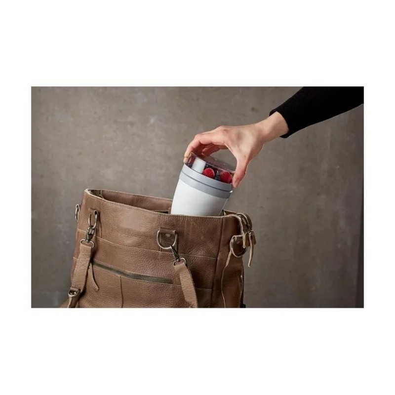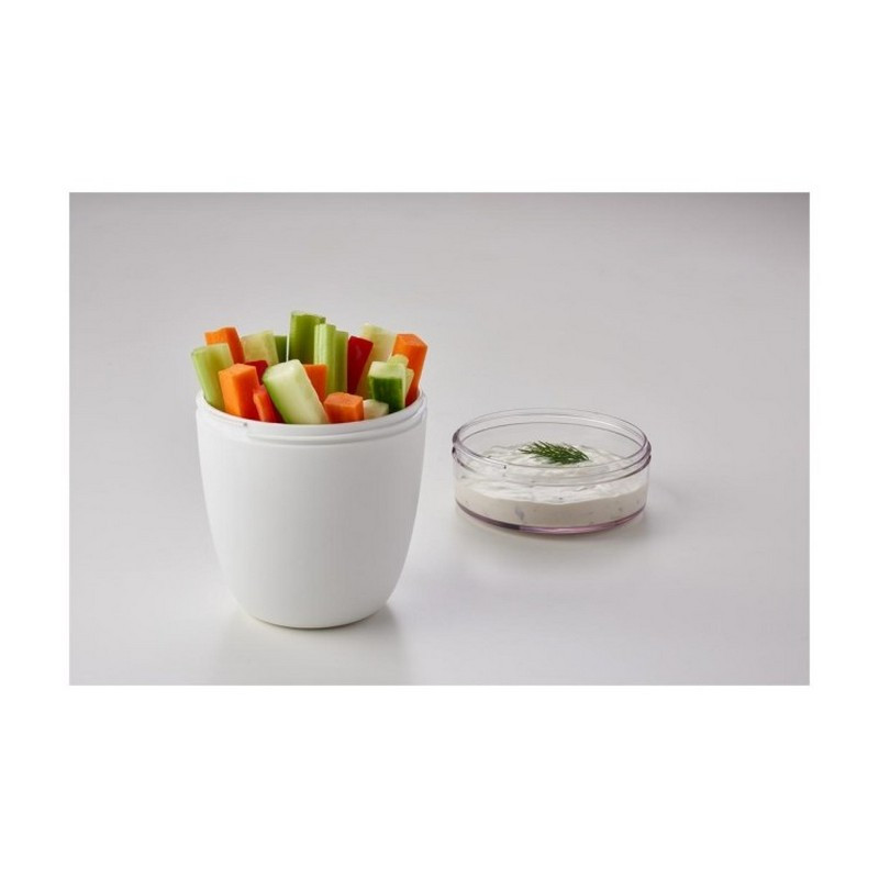 Egy egyszerű csavaró mozdulattal szétválasztható a két rekesz és mindkét rekesznek külön fedele van. A felső, átlátszó tartály űrtaralma 200 ml, ami kb. 75 g műzli, vagy gyümölcs tárolására elegendő. Az alsó rész fél literes, ami egy nagyobb adag leves, tészta, főzelék, stb. tárolására tökéletes.