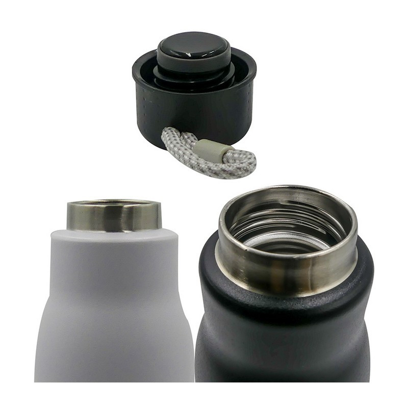 A képeken látható szürke kupakos fekete hőtartó kulacs jelenleg nem elérhető. A fekete kulacs is fekete kupakkal rendelkezik.