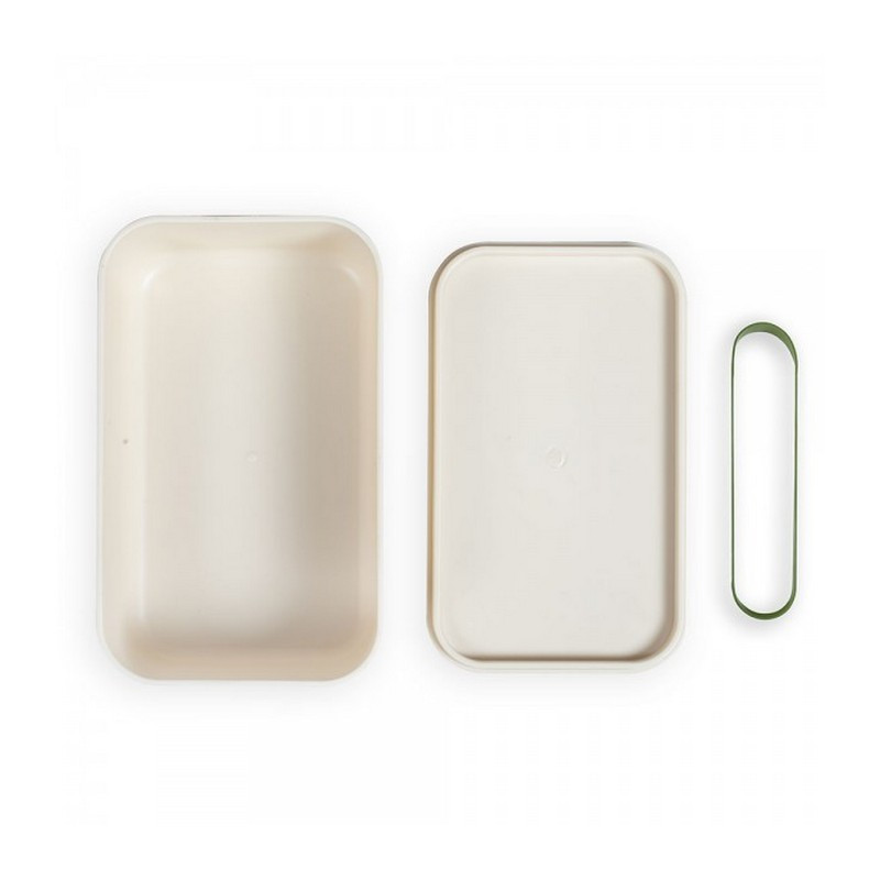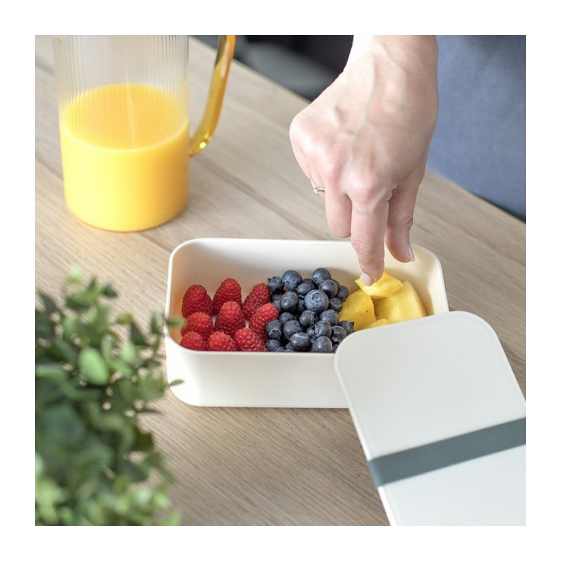 A Livoo hermetikusan záródó ételhordó doboz krémszínű, zöld pánttal kombinált kialakítása egyszerre modern és visszafogott, így könnyen illeszkedik bármilyen konyhába, táskába vagy munkahelyi környezetbe. A gondosan megtervezett forma és a letisztult színvilág kényelmes, mindennapi használatra készült.